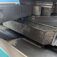 Die Kreissäge ist ein elektro-hydro-pneumatischer Kreissägehalbautomat, mit der Gehrungsschnitte bis 45° inks bzw. 60° rechts an Profilen und Vollmaterialien gesägt werden können.