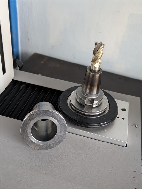 Tischauflage Ø 90 mm, Ausladung max. 225 mmm, Drehbar 360° manuell, Werkzeugaufnahme SK50:SK40 (Foto)