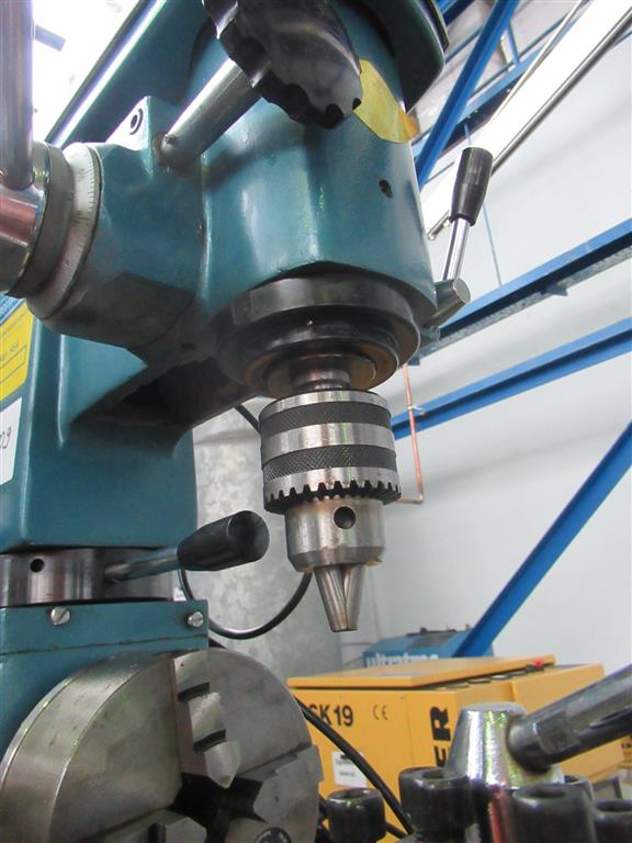 Bohrleistung max. 30mm; Ausladung 172mm; Spindel schwenken 360°; Vertikalverstellung 80mm; MK3 Aufnahme; Ausstattung derzeit mit Bohrfutter 1 - 13mm; Tisch-Fläche L: 150 x B:200mm mit T-Nut; Drehzahl 125 - 1.600 U/min. / 12 Stufen