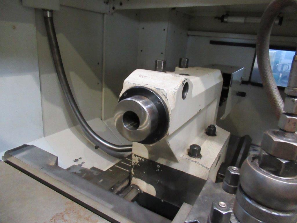 -Turning chuck Röhm Duro 900NC (hydraulic power chuck) with bore Ø 165mm, 3 hardened spare jaws reversible), clamping is done by program function or by foot switch confirmation.